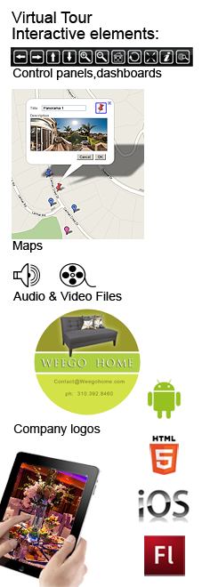 You will not need anything special or additional. All our panoramas areHTML5 friendly. It means they support Flash and non_flash (i-devices). Our Virtual Tours and 360 Panoramas can easily be integrated into your website without the need of extensive source code modification.